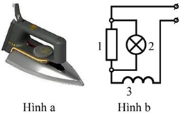 Một bàn ủi (hình a) có thể hoạt động được với dòng điện một chiều và xoay chiều. Đế của bàn ủi có khối lượng 400 g được làm từ hợp kim chịu nhiệt, nhiệt dung riêng của đế là 890 J/kg.K. Sơ đồ mạch điện của bàn ủi (hình b) bao gồm các bộ phận: điện trở Shunt (1) có giá trị 8Ω, đèn báo hiệu (2) có điện trở 2Ω, cuộn dây điện trở (3) coi như điện trở thuần có giá trị điện trở 98,4Ω. Cắm bàn ủi vào mạng điện có hiệu điện thế 220 V. Biết nhiệt độ ban đầu của bàn ủi là 220C; 80% nhiệt lượng tỏa ra trên dây điện trở (3) được dùng làm nóng đế bàn ủi và bàn ủi có thể là được quần áo khi nhiệt độ của đế đạt giá trị nhỏ nhất là 1800C. Sau khoảng thời gian ngắn nhất là bao nhiêu giây kể từ lúc bắt đầu cắm điện thì bàn ủi có thể là được quần áo? (Kết quả làm tròn đến chữ số hàng đơn vị).