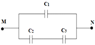Ba tụ điện được mắc thành bộ theo sơ đồ như trên. Cho \({C_1}\; = 3\mu F,{C_2}\; =