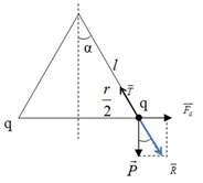 Treo hai quả cầu kim loại, nhỏ, cùng khối lượng và chưa nhiễm điện bằng hai sợi chỉ tơ có cùng chiều dài l = 1 m vào cùng một điểm cố định trong không khí. Cho một vật nhiễm điện tiếp xúc với một trong hai quả cầu để truyền điện tích 21 nC cho hai quả cầu rồi lấy vật đó ra thì khi hệ cân bằng, hai quả cầu cách nhau một đoạn r = 8 cm. Lấy \(g = 10\,\,m/{s^2}\).