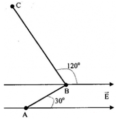 Một điện tích \(q = + 4.10^{-8}C\) di chuyển trong một điện trường đều có cường độ E = 100 V/m theo một đường gấp khúc ABC. Đoạn AB dài 20 cm và vectơ độ dời \(\overrightarrow {AB}\) làm với các đường sức điện một góc \(30^0\). Đoạn BC dài 40 cm và vectơ độ dời \(\overrightarrow {BC}\) làm với các đường sức điện một góc \(120^0\).