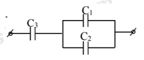 Ba tụ \({C_1} = 3\,\,nF;\,\,{C_2} = 2\,\,nF;\,\,{C_3} = 20\,\,nF\) mắc như hình vẽ. Nối bộ tụ với