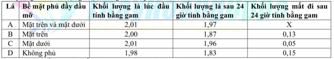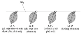 Một nhóm học sinh đã nghiên cứu sự mất nước khi các bề mặt khác nhau của lá được phủ bằng một lớp mỡ. Các bước tiến hành thí nghiệm được thực hiện như sau: