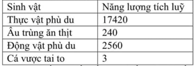 Cho sơ đồ hình tháp năng lượng được ghi nhận từ 4 nhóm sinh vật (Đơn vị tính: Kcal/m2/năm). Các nhóm sinh vật trong tháp với năng lượng tích lũy được ghi nhận là