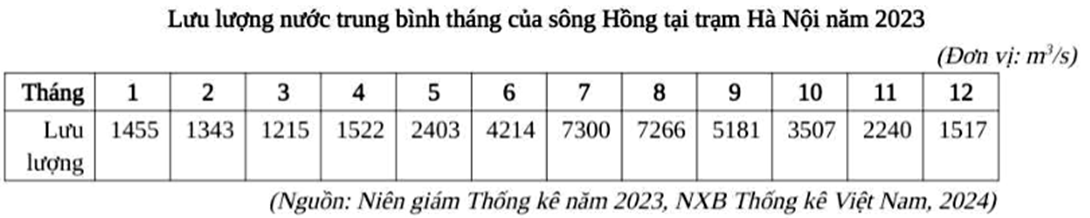Căn cứ vào bảng số liệu trên, hãy cho lưu lượng nước trung bình của sông Hồng tại trạm Hà Nội là bao nhiêu m³/s. (làm tròn kết quả đến hàng đơn vị)