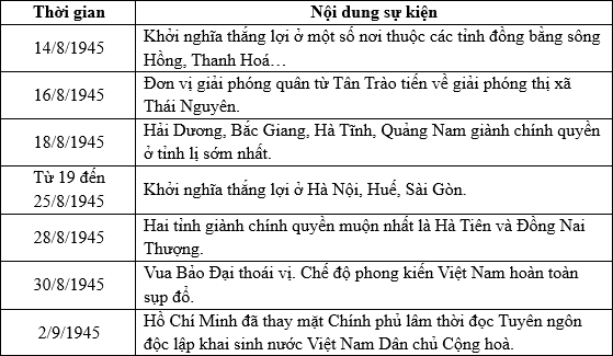 | a) Từ ngày 14/8/1945, khởi nghĩa đã thắng lợi ở một số xã, huyện thuộc đồng bằng sông Hồng. | ||