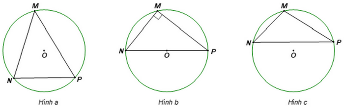 Vẽ đường tròn \(\left( O \right)\) ngoại tiếp tam giác \(MNP\) trong các trường hợp sau:a) \(\angle