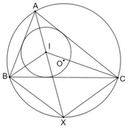 Cho tam giác ABC nội tiếp đường tròn (O) và ngoại tiếp đường tròn (I). Tia AI cắt (O) tại X
