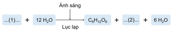 Phương trình tổng quát của quá trình quang hợp như sau:Các vị trí (1) và (2) còn thiếu trong