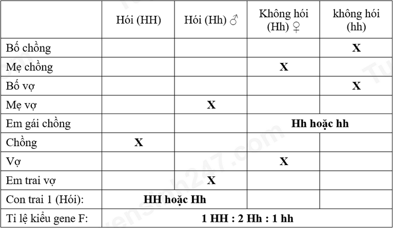 Ở người, bệnh hói đầu (baldness) do allele trội H nằm trên NST thường quy định, kiểu gene dị