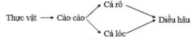 Hình vẽ dưới đây là lưới thức ăn đơn giản ở cánh đồng. Biết cá lóc tích lũy được 1620 kcal, tương đương với 9% năng lượng tích lũy ở bậc dinh dưỡng liên kết với nó. Giả sử hiệu suất sinh thái giữa diều hâu và cá rô, diều hâu với cá lóc đều là 10%. Hỏi năng lượng của diều hâu là bao nhiêu kcal?