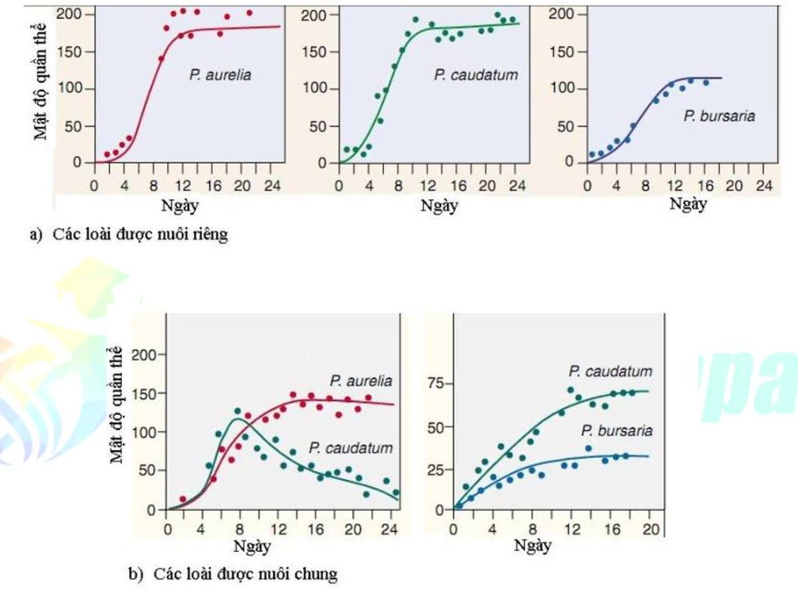 - Thí nghiệm 2: Nuôi chung loài Paramecium aurelia và loài Paramecium caudatum trong 1 bể: kết quả sau 24 giờ trong bể chỉ còn loài Paramecium aurelia.