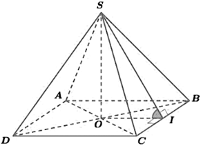 Gọi O là tâm của hình vuông ABCD và I là trung điểm của BC. Khi đó \(\angle SIO = {45^0}\)