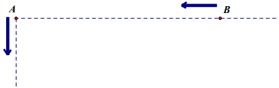 Hai con tàu đang ở cùng một vĩ tuyến và cách nhau 5 hải lí. Tàu thứ nhất từ vị trí ban đầu A chạy theo hướng Nam với vận tốc 6 hải lí/giờ, còn tàu thứ hai từ vị trí ban đầu B chạy theo hướng về vị trí ban đầu của tàu thứ nhất với vận tốc 7 hải lí/giờ (được mô tả như hình vẽ bên dưới). Khoảng cách ngắn nhất giữa hai con tàu là bao nhiêu hải lí? (Kết quả làm tròn đến hàng phần chục)
