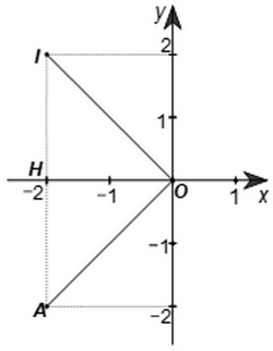 Trên mặt phẳng toạ độ \(Oxy\) cho \(A( - 2;2)\). Phép quay thuận chiều \({90^0}\) tâm O biến điểm A thành điểm I. Xác định tọa độ của điểm I.