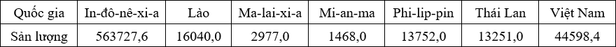 Cho bảng số liệu: Sản lượng khai thác than của một số nước khu vực Đông Nam Á năm