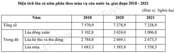 Cho bảng số liệu: