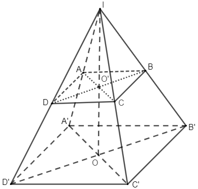 Cho khối chóp cụt tứ giác đều \(ABCD \cdot {A^\prime }{B^\prime }{C^\prime }{D^\prime }\)