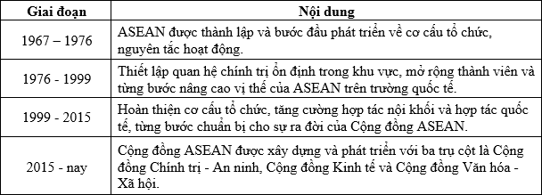 | d) Bảng thông tin trên thể hiện các giai đoạn phát triển chính của Hiệp hội các quốc gia Đông Nam Á (ASEAN). |