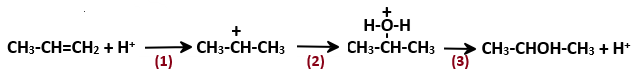 Dựa vào cơ chế phản ứng của propene với H2O.