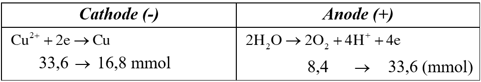 + Anode: khí thoát ra là O2 \( \to {{\rm{n}}_{{{\rm{O}}_2}{\rm{ (t)}}}}\)