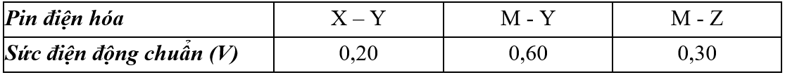 Sự sắp xếp nào đúng với tính khử của các kim loại X, Y, Z, M ?