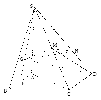 Cho khối chóp S.ABCD có đáy là hình bình hành. Gọi M, N là hai điểm nằm trên hai cạnh SC, SD sao cho \(\dfrac{{SM}}{{SC}} = \dfrac{1}{2},\dfrac{{SN}}{{ND}} = 2\), biết G là trọng tâm tam giác \(SAB\). Tỉ số thể tích \(\dfrac{{{V_{G.MND}}}}{{{V_{S.ABCD}}}} = \dfrac{m}{n}\), m, n là các số nguyên dương và \(\left( {m,n} \right) = 1\). Giá trị của \(m + n\) bằng: