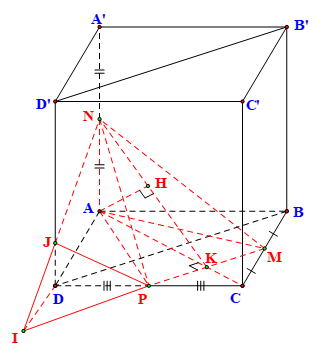 Cho hình hộp chữ nhật \(ABCD.A'B'C'D'\) có \(AB = BC = a\) và \(CC' = 2a\). Gọi \(M\)