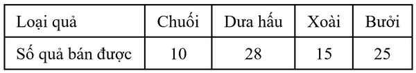 Số quả bán ra của một cửa hàng trong một ngày được ghi lại trong bảng sau. Loại quả được