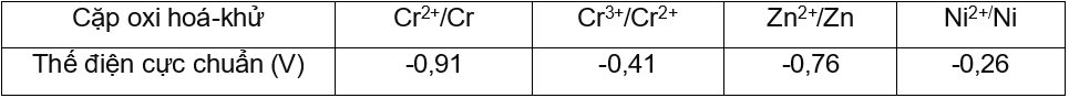 Cho các cặp oxi hoá - khử và thế điện cực chuẩn tương ứng: