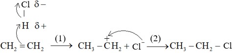 Cơ chế của phản ứng trên diễn ra theo 2 giai đoạn: