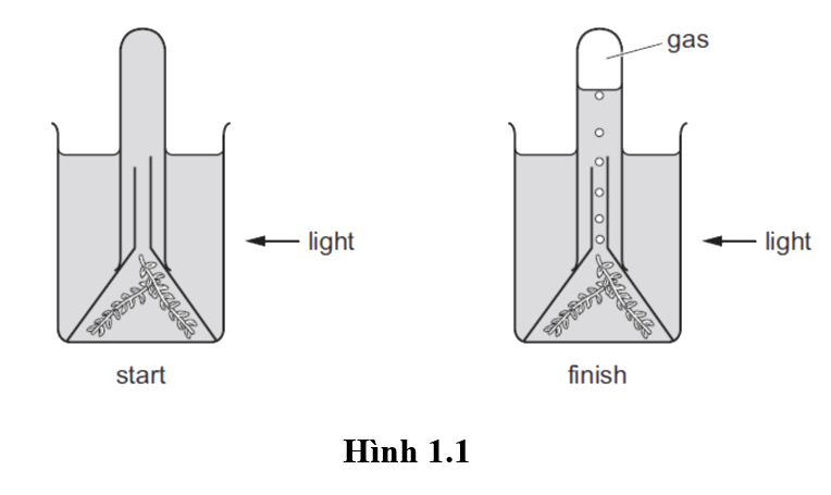 Hình 1.1 mô tả một thí nghiệm về quá trình quang hợp. Khi kết thúc thí nghiệm, nồng độ của