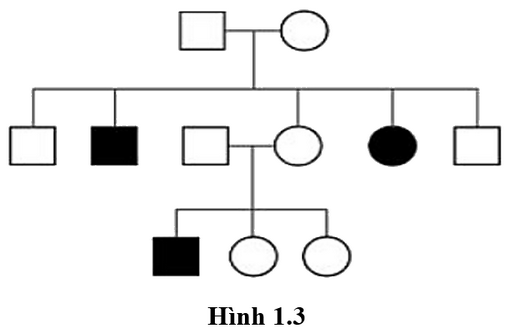 Sơ đồ phả hệ trong Hình 1.3 mô tả sự di truyền một bệnh ở người do một gene có hai allele