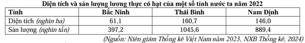 Năng suất lương thực có hạt = Sản lượng lương thực có hạt : Diện tích