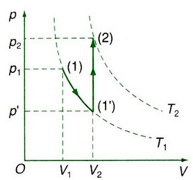 Một khối lượng khí xác định biến đổi trạng thái như đồ thị được biểu diễn như hình bên. Mối quan hệ giữa các thông số trạng thái là