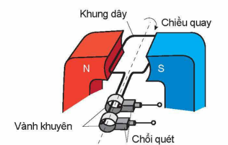 Một máy phát điện xoay chiều đơn giản gồm khung dây quay đều trong từ trường như hình