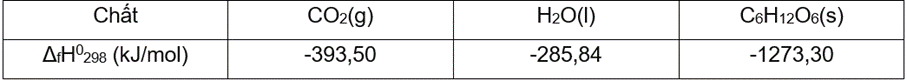 Trong phản ứng quang hợp, thực vật sử dụng năng lượng mặt trời để tạo thành glucose theo phản ứng hóa học sau: 6CO2(g) + 6H2O(l) → C6H12O6(s) + 6O2(g)