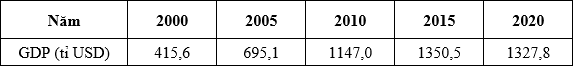 Cho bảng số liệu sau: GDP của Ô-xtrây-li-a giai đoạn 2000 – 2020 Dựa vào bảng số liệu, để