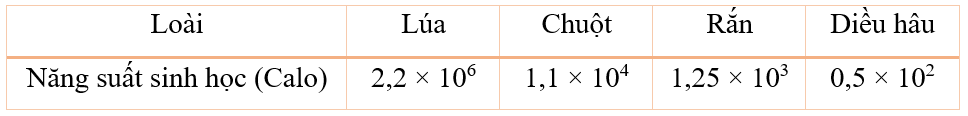 Cho các thông tin ở bảng dưới đây: Hiệu suất sinh thái giữa sinh vật