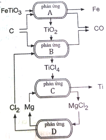 | b) Phương trình hoá học của phản ứng B là TiO2 + 2Cl2 → TiCl4 + O2 |