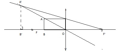 Một vật sáng phẳng AB = 2cm đặt vuông góc với trục chính của thấu kính hội tụ có tiêu cự f = 10cm và cách thấu kính một đoạn d = 7,5 cm.