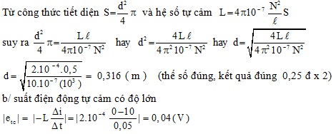 a, Tính đường kính ống dây.