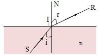 Một tia sáng đơn sắc truyền từ một chất lỏng có chiết suất n tới mặt phân cách của môi