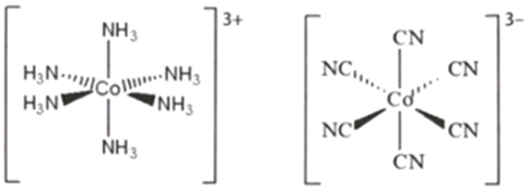 Các phức chất [Co(NH3)6]3+ và [Co(CN)6]3- có cấu trúc như sau: