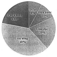 Biểu đồ hình quạt tròn ở hình bên biểu diễn tỉ lệ phần trăm chi phí sinh hoạt một tháng