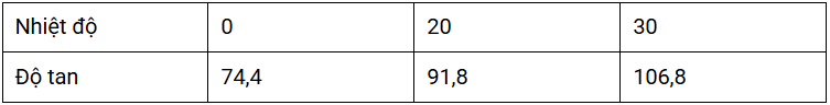 Khi làm lạnh dung dịch FeCl3 thu được tinh thể FeCl3.6H2O. Cho độ tan của FeCl3.6H2O trong nước ở một số nhiệt độ như sau: