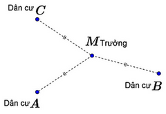 Trên bản đồ quy hoạch của một khu dân cư có ba điểm dân cư \(A,B,C\). Xác định địa điểm
