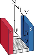 Xét khung dây MNPQ có dòng điện không đổi I chạy qua. Khung dây được đặt sao cho chỉ có một cạnh PQ có chiều dài L nằm hoàn toàn trong từ trường đều giữa hai cực của nam châm điện hình chữ U với các đường sức từ vuông góc với mặt phẳng khung dây (xem hình bên).