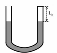Như hình vẽ, một ống thủy tinh hình chữ U tiết diện đều có một đầu kín và một đầu hở. Bề mặt thủy tinh ngân ở hai nhánh ngang nhau và chiều dài cột khí trong nhánh kín là L0 = 30 cm. Áp suất khí quyển là 75 cmHg. Nếu đổ thủy ngân vào đầu hở sao cho chiều dài cột khí ở nhảnh kín là 25 cm. Khi đó, chiều dài cột thủy ngân được đổ vào ống là bao nhiêu cm?
