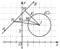 Trong mặt phẳng tọa độ \(O x y\) (đơn vị trên các trục là mét), một chất điểm chuyển động đều luôn cách điểm \(I(3 ; 3)\) một khoảng bằng 2 . Một chất điểm khác chuyển động thẳng đều trên đường thẳng, tại hai thời điểm, chất điểm đó ở vị trí \(A(-3 ; 2)\) và \(B(2 ; 7)\). Tại mọi thời điểm, khoảng cách giữa hai chất điểm lớn hơn bao nhiêu mét.