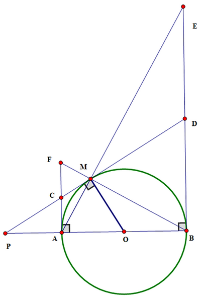 b) Gọi P là giao điểm CD và AB. Chứng minh: PA.PO = PC.PM